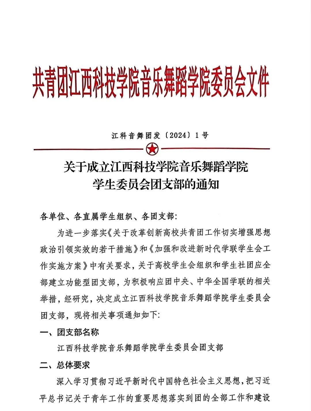 关于成立江西科技学院音乐舞蹈学院学生委员会团支部的通知